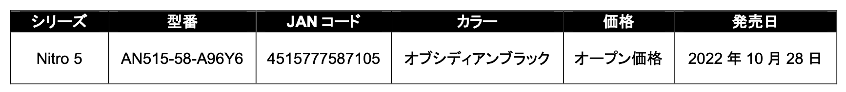 製品情報ページ:https://acerjapan.com/notebook/nitro/nitro5/AN515-58-A96Y6