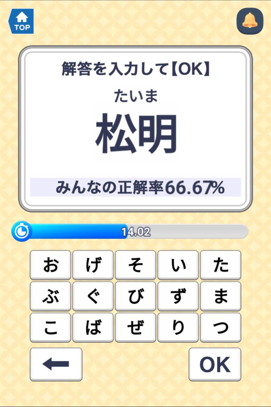 答えの入力方法は、バラバラに並べられた15文字のひらがなから正しい読み方を探して入力するというシンプルながらも頭を使う内容となっています。
