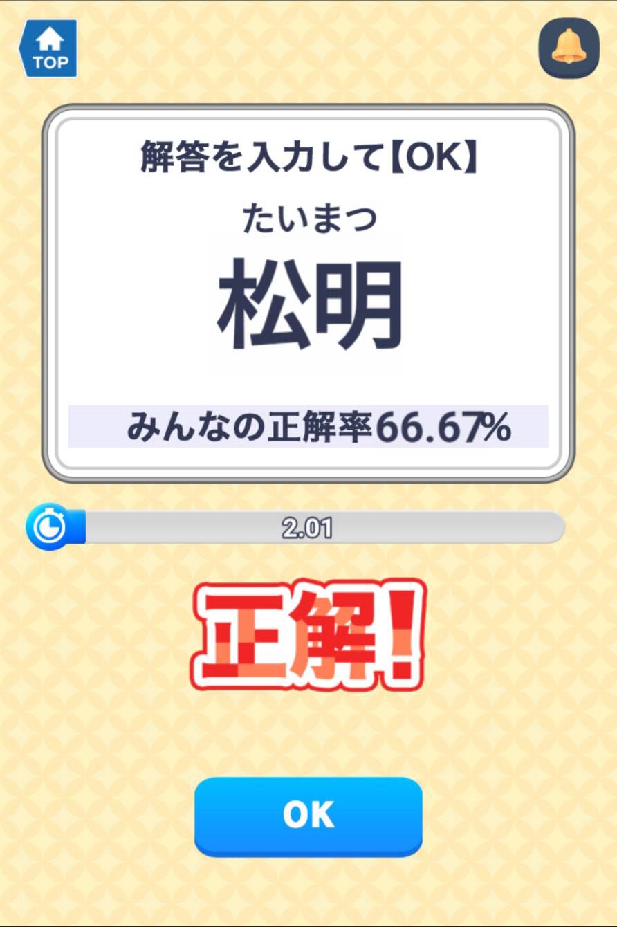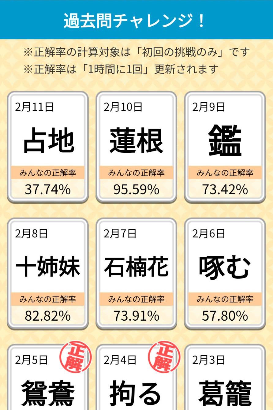 この正解率は、問題の難易度を知る手がかりになるだけでなく、自分の「漢字力」を他のプレイヤーと