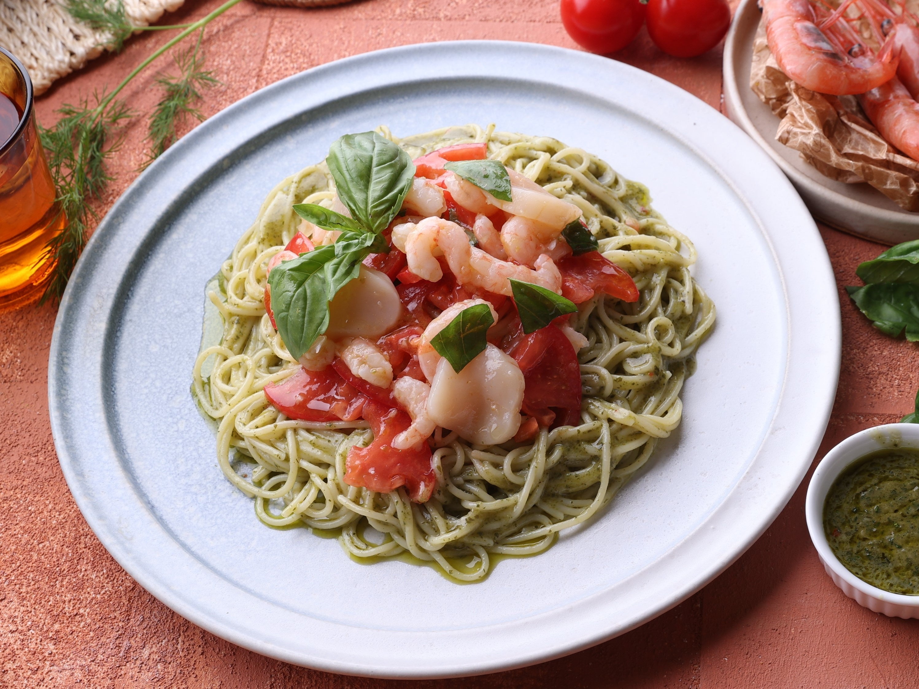 ■甘海老と帆立の冷製ジェノベーゼパスタ