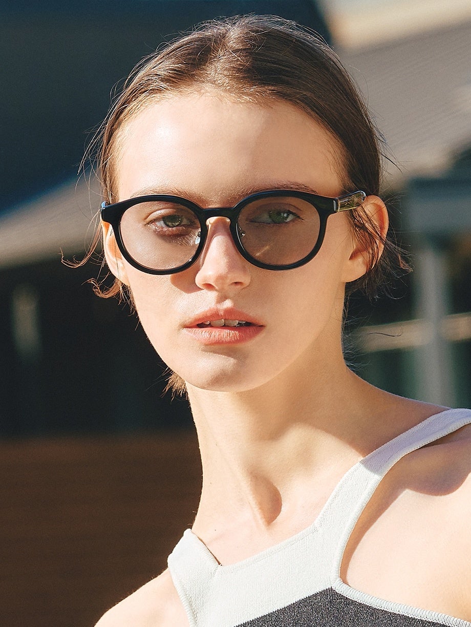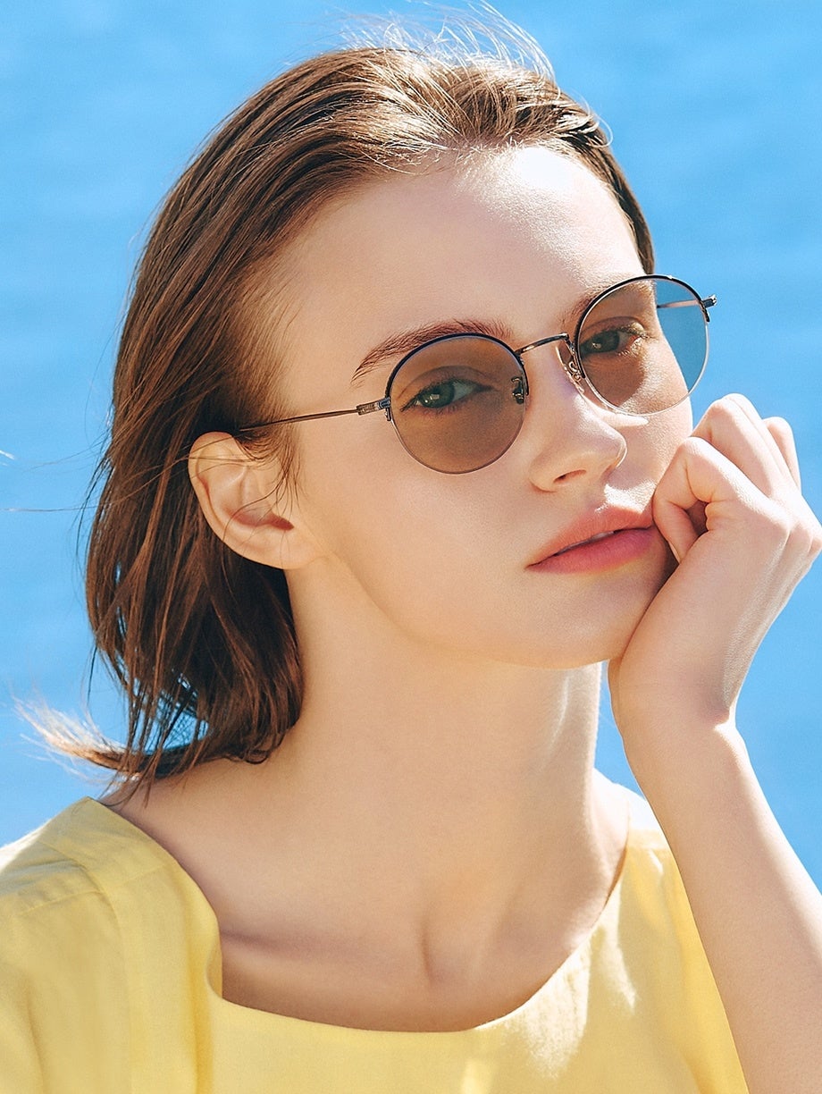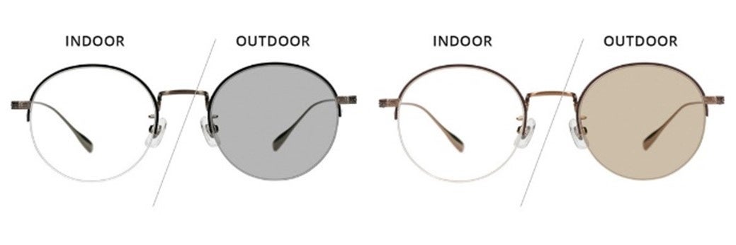 小ぶりでスリムなラインに加えてインドアとアウトドアで調光するレンズでエレガントな印象に