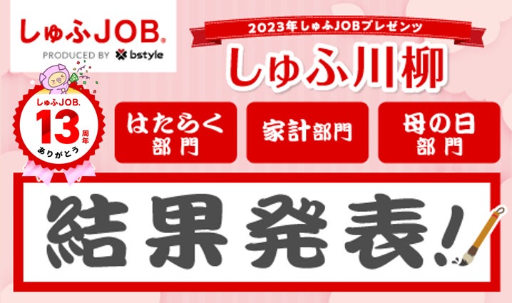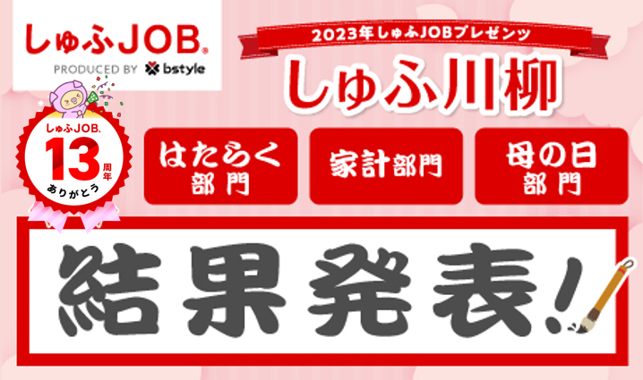 しゅふ(主婦・主夫)に嬉しい条件の求人を約15万件から探せる求人サイト「しゅふJOB」では、13周年を迎える今年、しゅふの皆さんが日々の生活の中で感じる課題や疑問、喜びをリアルな声として発信できる場所にできればと、「しゅふ川柳」を創設いたしました。