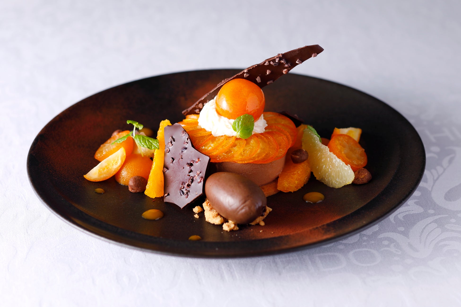 ◆宮崎県産金柑“たまたま”のタルトショコラ チョコレートソルベ添え 2,700円