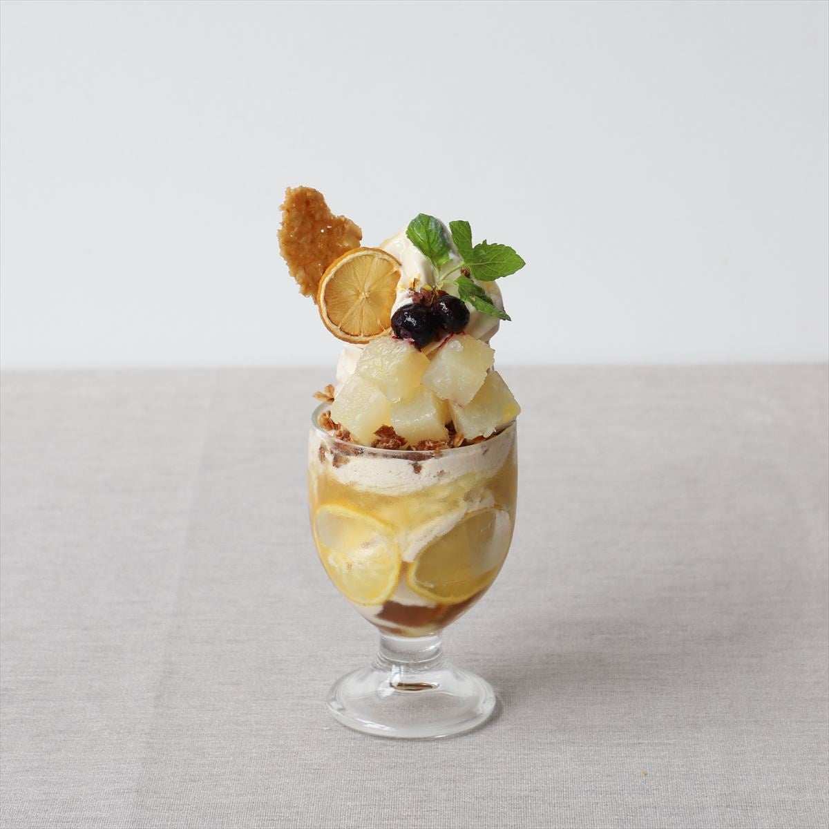 自家製のレモンジュレ、果肉入りレモンゼリー、有機グラノーラ、アールグレイゼリーなどこだわりのアイテムを使い、最後まで飽きない贅沢なパフェに仕上げました。