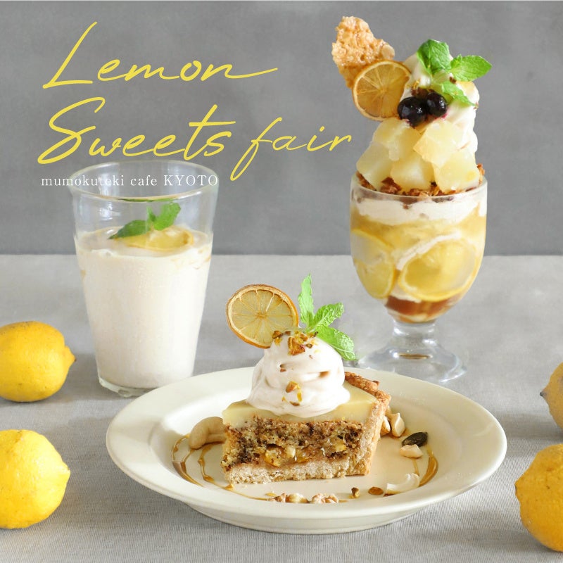 京都のヴィーガン対応カフェ「mumokuteki cafe KYOTO」(ムモクテキカフェ キョウト)が、無農薬レモンを使ったレモンスイーツフェアを開催