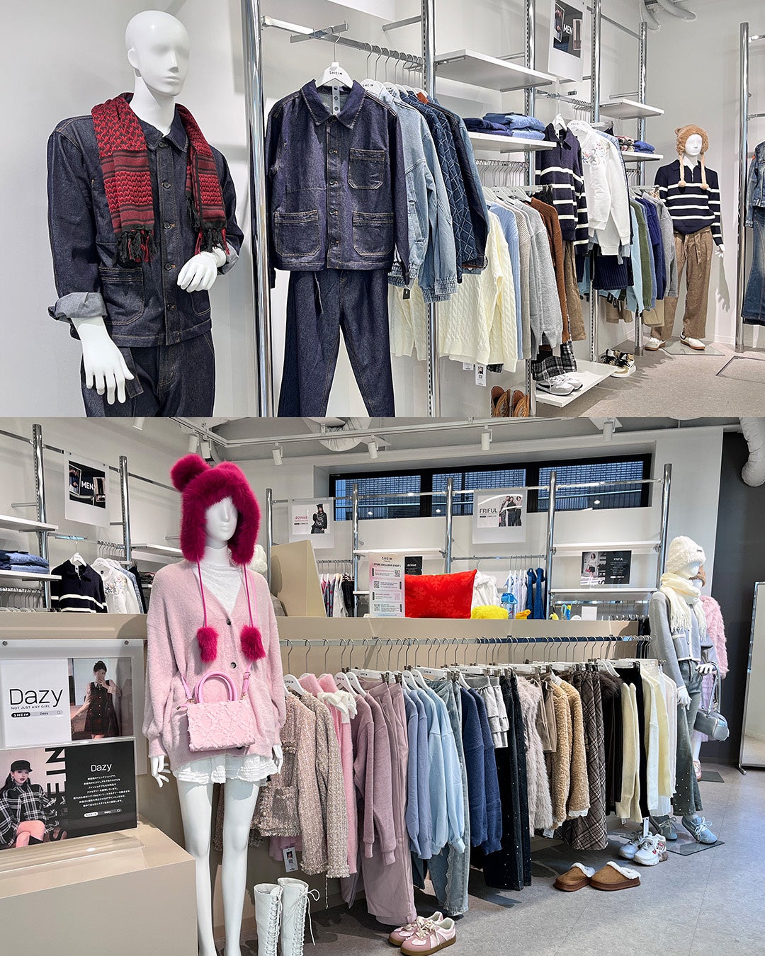 韓国風ガーリーなアイテムが揃う「Dazy(デイジー)」、カジュアルでデイリー使いにおすすめの「FRIFUL(フリフル)」、そしてサブカルチャーエッセンスを取り入れた「ROMWE(ロムウェ)」など、幅広いテイストのトレンドショップが揃い、学生たちの発想力と表現力によって、SHEINらしさとZ世代の感性を融合させた、新鮮でスタイリッシュなショールームに仕上がっています。
