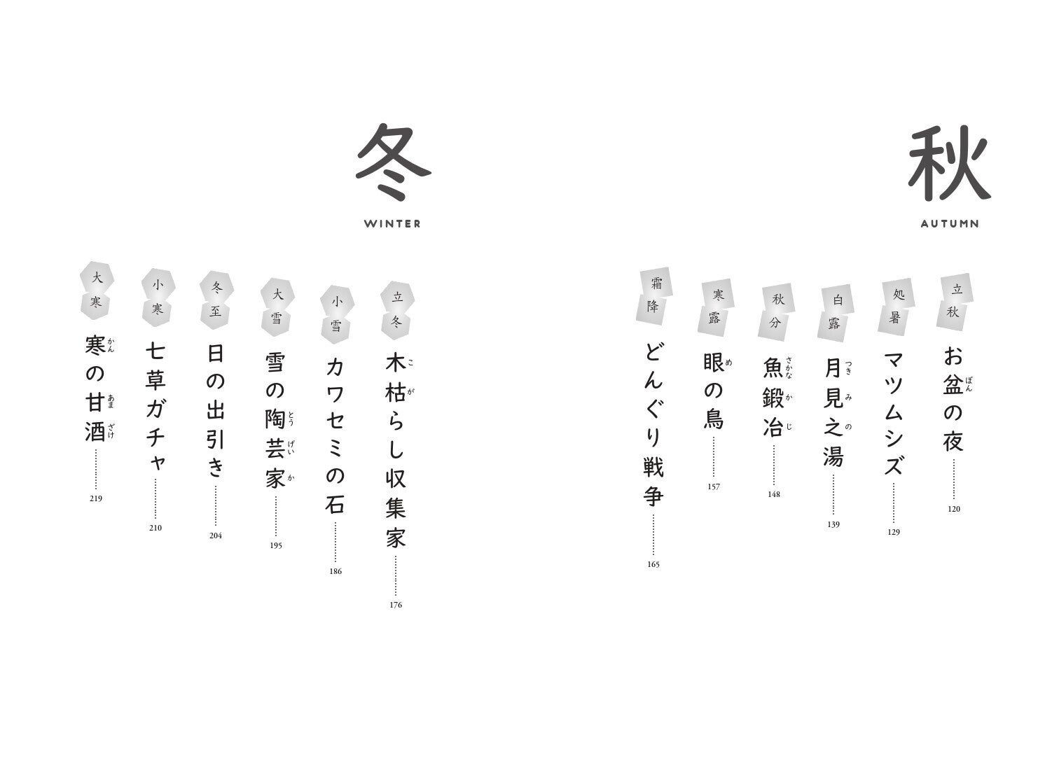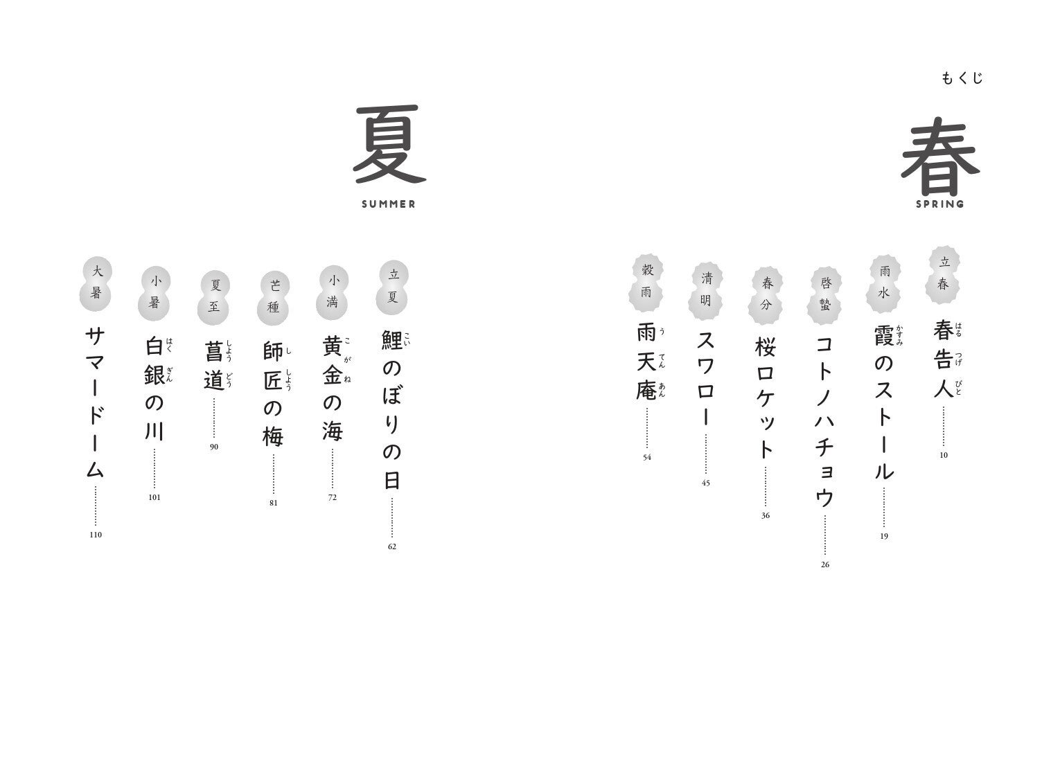 各話のラストには各節気のミニガイド付き、1話5分ほどの短い時間のなかで、春夏秋冬をさまざまな角度から味わえる、「一年中いつでも旬」な一冊になっています。