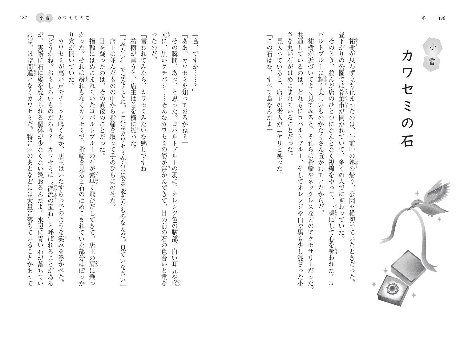 本書発売を記念して、まさにいまの節気である「小雪」の物語「カワセミの石」および、