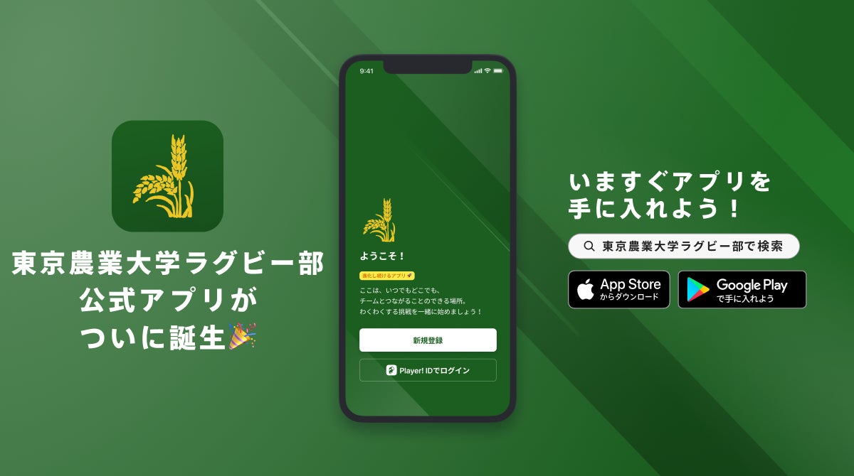 AppStoreもしくはGooglePlayで「東京農業大学ラグビー部」と検索!