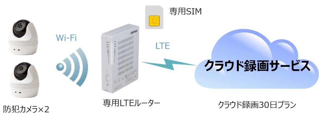 ・無線接続で配線不要(防犯カメラ・ルーター間はWi-Fi接続、ルーターからはLTE通信(SIM内蔵))