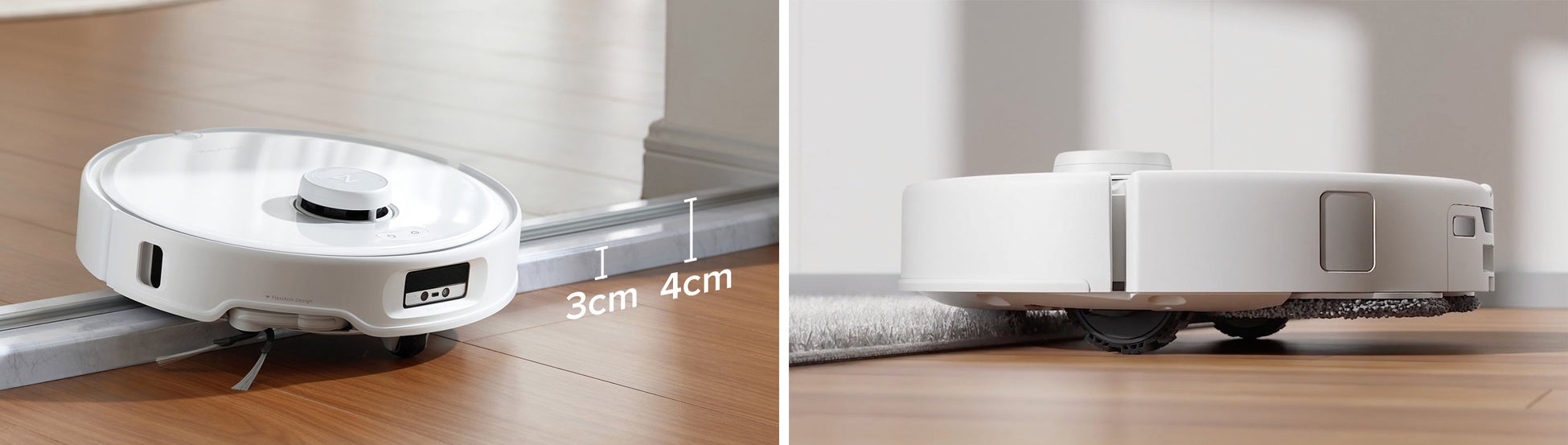 自動的に本体の前輪を持ち上げることで、最大4cmまでの二層の段差(一層の段差は最大3cmまで)を乗り越えます。モップとブラシも自動でリフトアップするため、掃除した床を汚すことなく、キレイな状態を保つことができます。