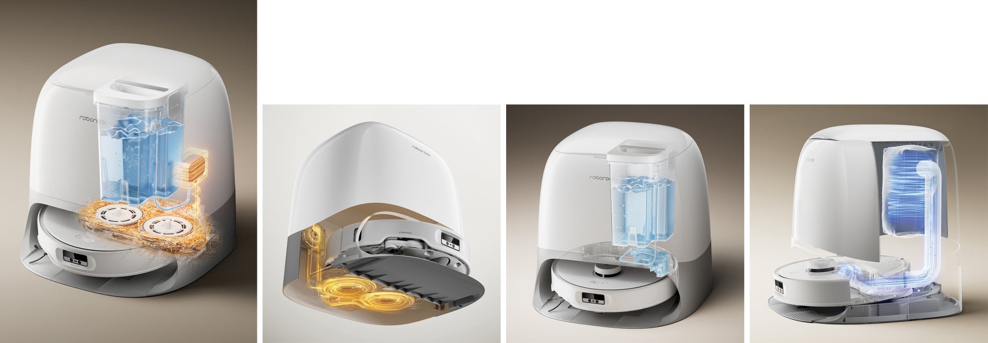 ・モップ洗浄、乾燥、給水、ゴミ収集を任せることができる、デザインが美しい4way全自動ドックQ3を搭載