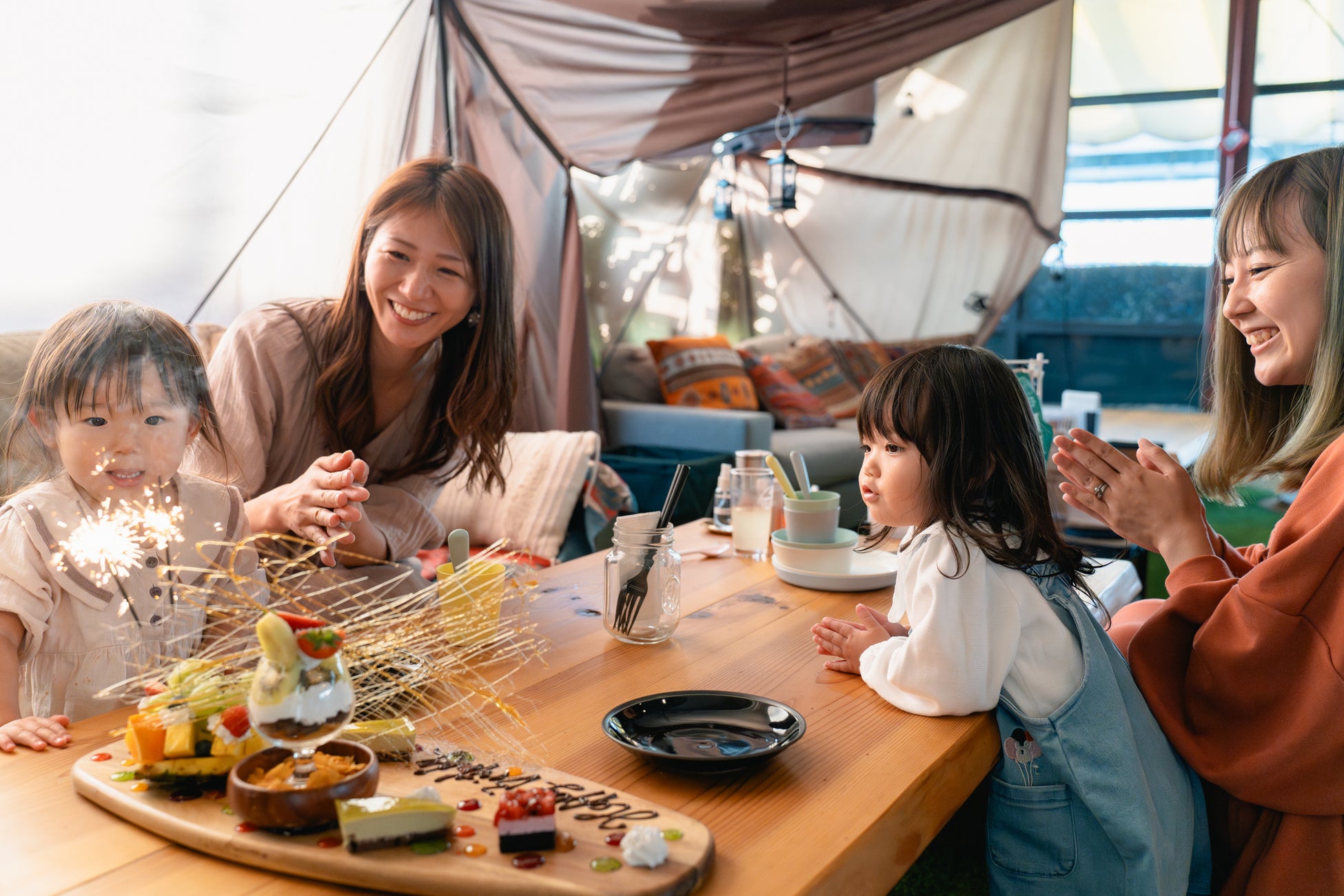 屋内だから雨・風・寒さの心配なし。小さな子でも快適に過ごせる“室内キャンプ”仕様。