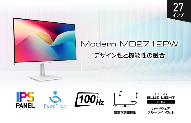 白を基調としたスタイリッシュなデザインに、目に優しいEyesErgo機能搭載27インチ、リフレッシュレート100Hz、多機能スタンド搭載ビジネス向けモデル「Modern MD2712PW」発売