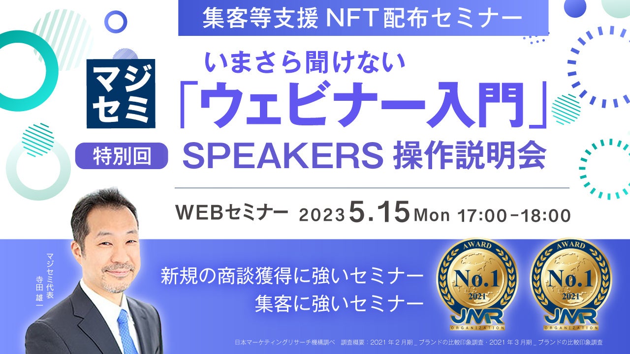 マジセミ株式会社はSPEAKERS操作説明会★集客等支援NFT配布セミナー★というテーマのウェビナーを開催します。