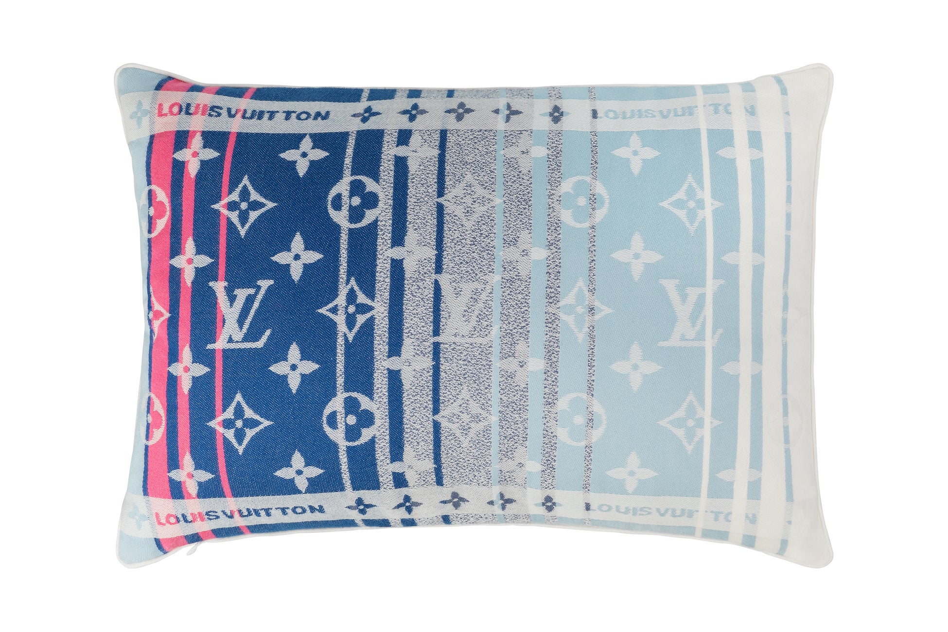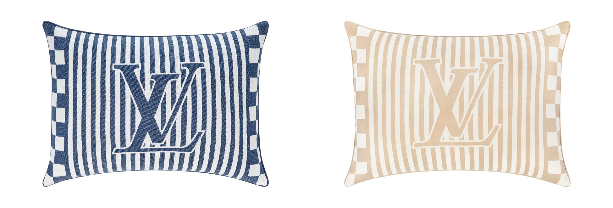 浜辺やプールサイドで寛ぐのに最適な「クッション・プラージュ LV グラフィカル」。ピローのフロントにはLV イニシャル、ストライプ、チェック・パターンを組み合わせたデザインをあしらい、背面には2つのモノグラム・フラワー モチーフとメゾンのシグネチャーで彩りを添えました。同コレクションのオーバーサイズのビーチブランケットとも相性抜群です。