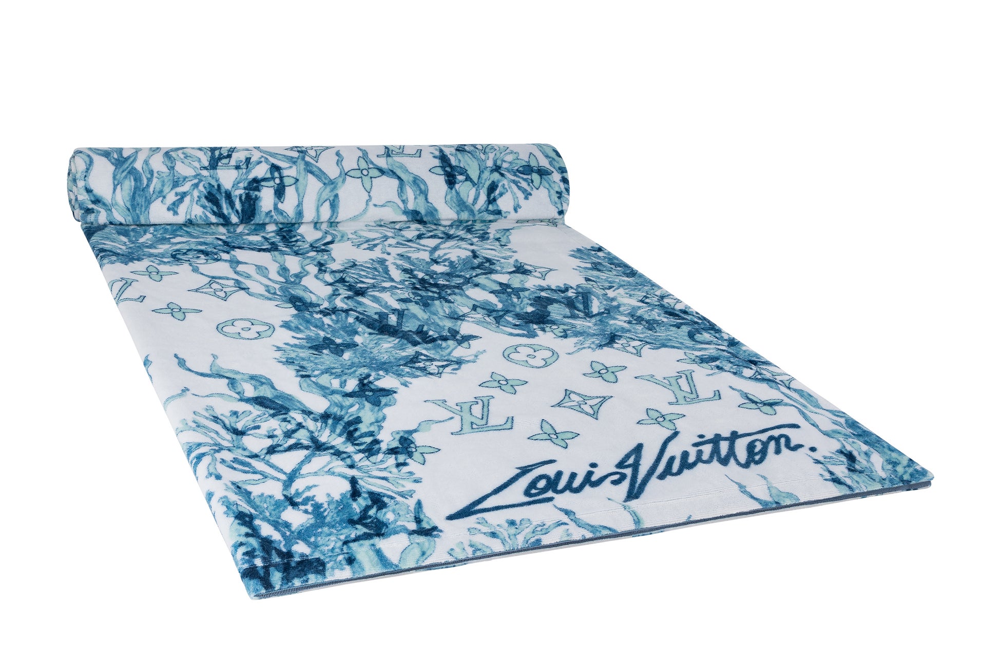 プールサイドのデッキチェアに掛けるのにぴったりの「ビーチタオル・モノグラム アクアガーデン」。深海のサンゴ礁から着想を得たブルー & ホワイトのプリントに、メゾンのイニシャルとモノグラム・パターン、大胆な「Louis Vuitton」シグネチャーを重ねました。コットン100%を使用した、柔らかさと優れた吸水性が魅力の、泳いだ後にぴったりのアクセサリーです