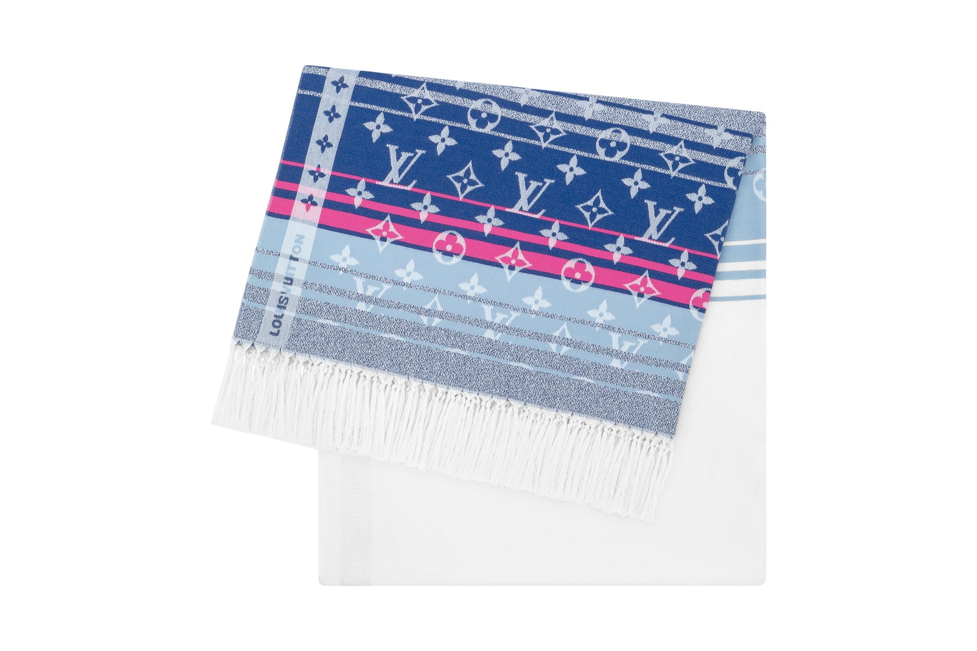 海辺やプールサイドでのラグジュアリーなレジャーにぴったりのビーチブランケット「クヴェルテュール・プラージュ モノグラム サンセット」。夕暮れのトロピカルな色合いから着想を得たデザインです。柔らかいコットン100%の素材にカラフルなストライプをあしらい、全面に散りばめたモノグラム・パターンと大ぶりのフリンジで仕上げました。太陽が輝く夏のバカンスに最適な、大判サイズも魅力。