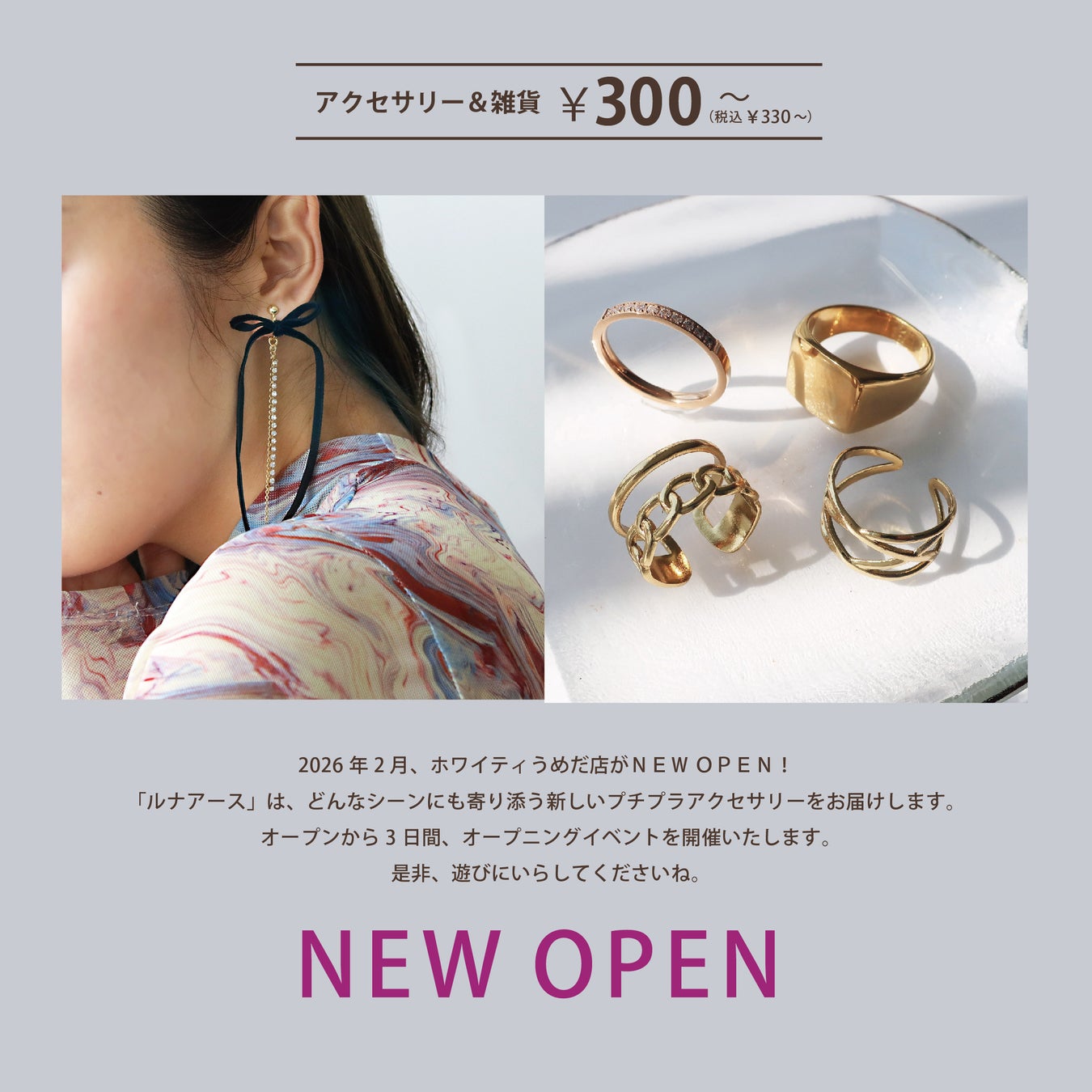 2/5(木)330円(税込)からのプチプラアクセサリーブランド「LUNA EARTH」ホワイティうめだにオープン