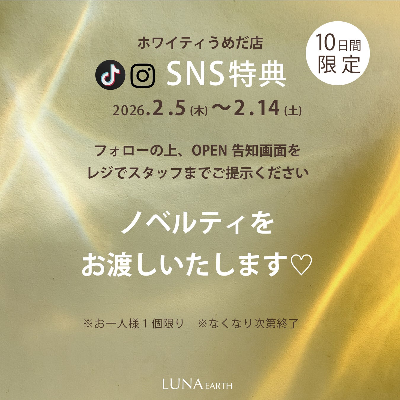 LUNA EARTHの公式TikTokまたはInstagramアカウントをフォローいただいたお客様を対象に、