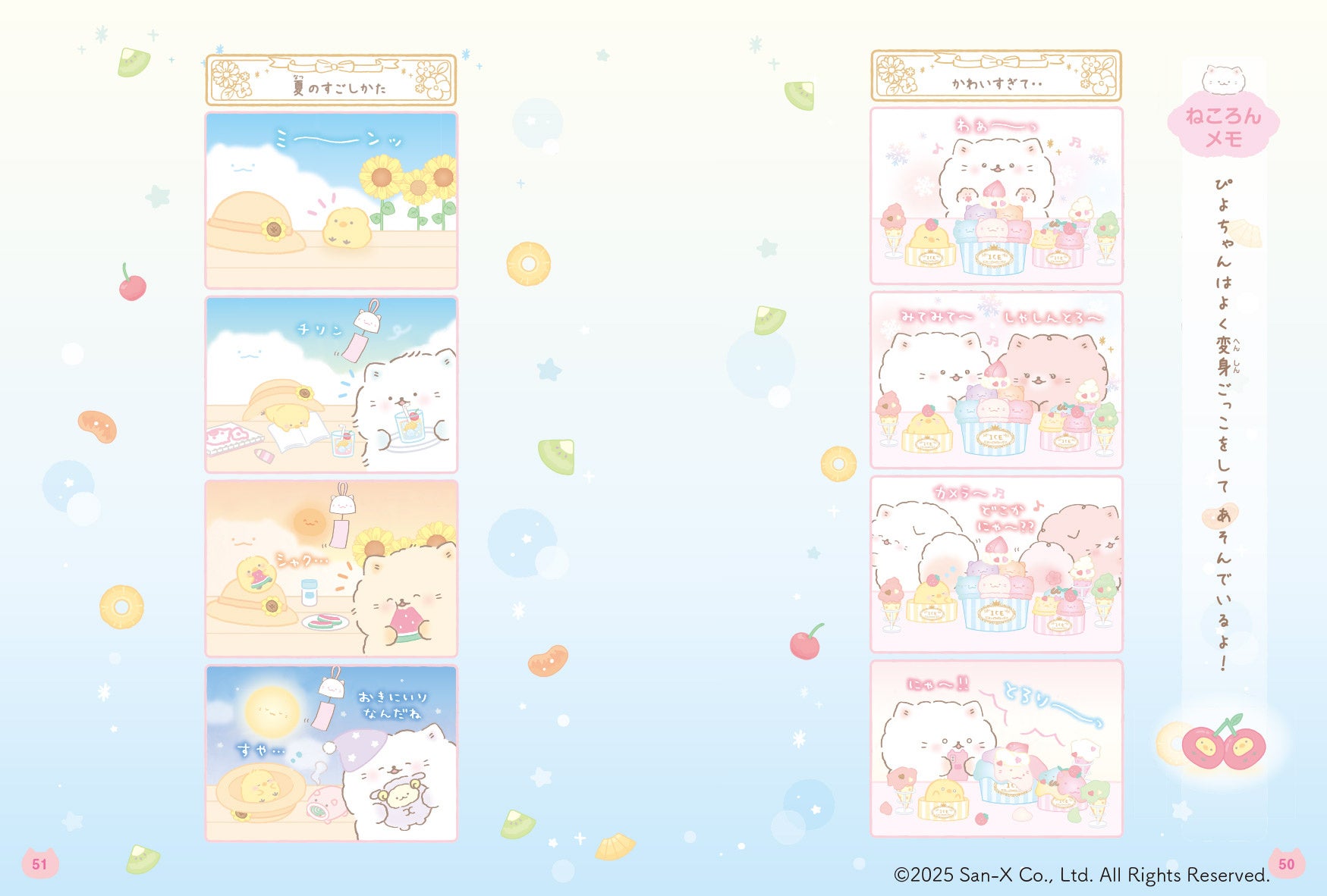 4コマまんがのほかにも、キャラクター紹介やねころんたちのかわいいイラストを集めたページなど盛りだくさん! ねころんの豆知識が楽しめる「ねころんメモ」もページのおまけとして収録されており、ねころんのことをもっと詳しく知ることができます♪