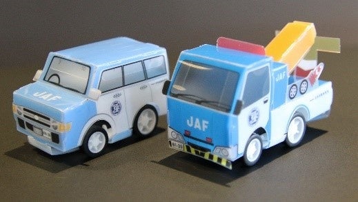 そのほか、「過去」エリアでは過去のJAFロードサービス隊の制服や機関誌「JAFMate」第一号など歴代の冊子を展示し、「現在」エリアではJAFの現在の取り組みを映像でPRいたします。また、ブース受付(インフォメーション)ではJAFアプリクーポン※2提示者へのノベルティ「JAF 組立プルバックカー」の配布など盛りだくさんのブースとなっています。モビリティショーへお越しの際は、ぜひJAFのブース(東展示場3ホール[4階])にもお立ち寄りください。