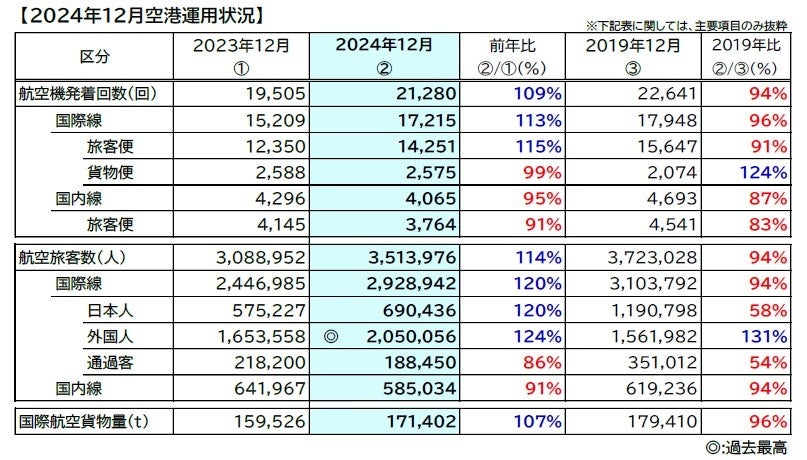 万人(19年同月比131%)となり、開港以来初めて200万人を突破しました。2024年2月以降11カ月