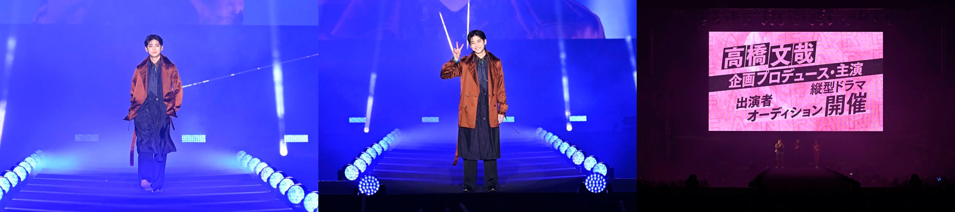 トークパートでは、高橋文哉が所属する株式会社エー・プラスによる縦型ドラマレーベル「FANFARE(ファンファーレ)」の発足、そしてその第1弾企画として、TGC協力のもと、高橋文哉が企画プロデュース・主演を務める縦型ドラマの制作決定をサプライズ発表!さらに、合格者には同縦型ドラマへの出演、そして、株式会社エー・プラスへの所属交渉権が与えられるオーディションの開催決定も同時発表しました。高橋文哉は、「第1弾を任せてもらったので、頑張りたいです。役者にしか生み出せない企画、観たことがないものを届けたいですね。今も毎晩、紙とペンを使ってアイデアを書き出しています。」と想いを語り、オーディション参加者に向け「僕もいつかテレビの中に入りたい、俳優になりたいという自分の気持ちに素直になった結果、今ここに立っています。夢への一歩を僕と一緒に踏み出したいという方を待っています。オーディションでお会いしましょう。」とメッセージを送りました。