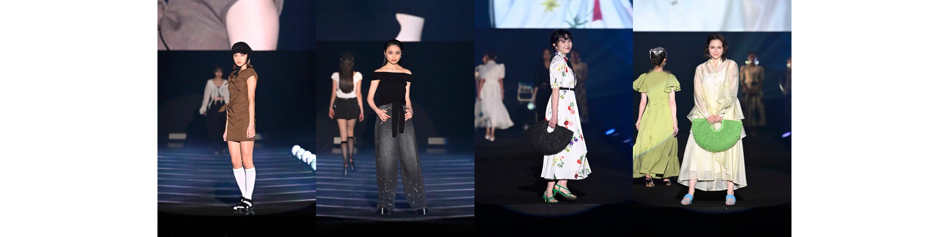 さらに、今年2025年に10周年を迎えるブランドで、“クチュールカジュアル”をキーワードに、カジュアルながらもクチュール感があり、シンプルながらも大人キレイに着こなせる洗練されたアイテムを提案するAND COUTURE(アンドクチュール)が、『TGC 熊本 2019』以来、約6年ぶりにTGC熊本に登場!EMODAのステージから一転、「vivid luxe summer」をテーマに、華やかでモードな印象のアーティスティックなフラワー柄や、フレッシュさを感じるライムイエロー、マスカットグリーンのビタミンカラーのアイテムで彩られたスタイリングで、ミチや、それぞれが個性あふれる才能を持ち、各界で活躍する“奇跡”とも称される本田3姉妹の末っ子本田紗来、バラエティー番組を中心に大活躍の国民的タレントで、今年2025年1月24日(金)に公開された映画『悪鬼のウイルス』にて映画初主演も務めた村重杏奈らがランウェイを飾りました。