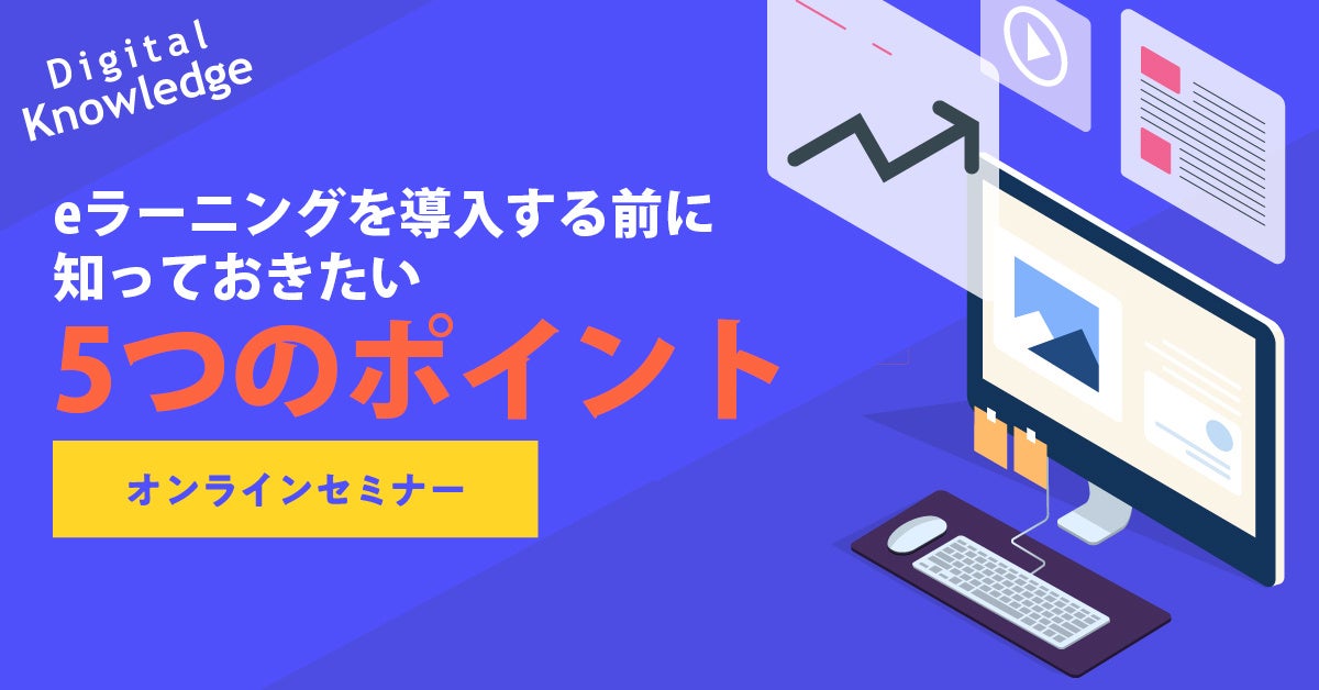 導入実績2000超を誇るeラーニング専門ソリューション企業、株式会社デジタル・ナレッジ(本社:東京都台東区、代表取締役社長:はが弘明)が主催する『eラーニングを導入する前に知っておきたい5つのポイント』の、12月開催が決定しました。(https://www.digital-knowledge.co.jp/archives/29854/)