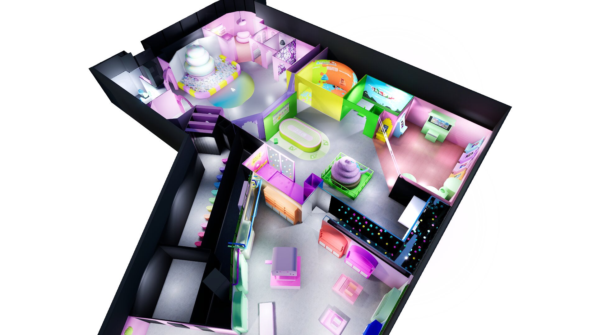 パステルカラーのうんこが大量に飛び交うフォトスポットです。マイうんこ片手に、うんこカワイイ写真を撮りましょう!