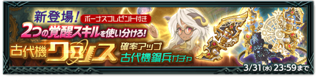 <新たな武器を手に入れ、高みを目指せ!「古代機クロノス確率アップ 古代機鋼兵ガチャ」販売!>