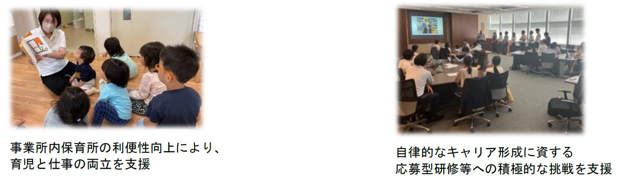 ・社外研修の参加等による女性管理職候補社員の育成と両立支援を推進する。