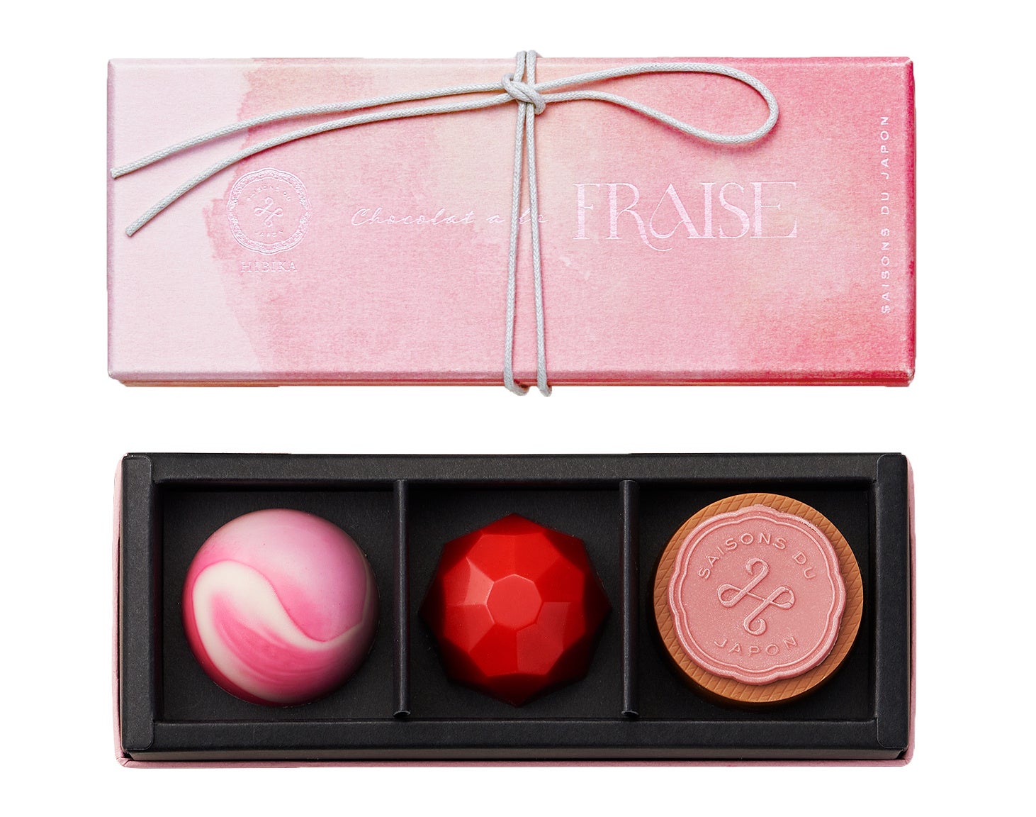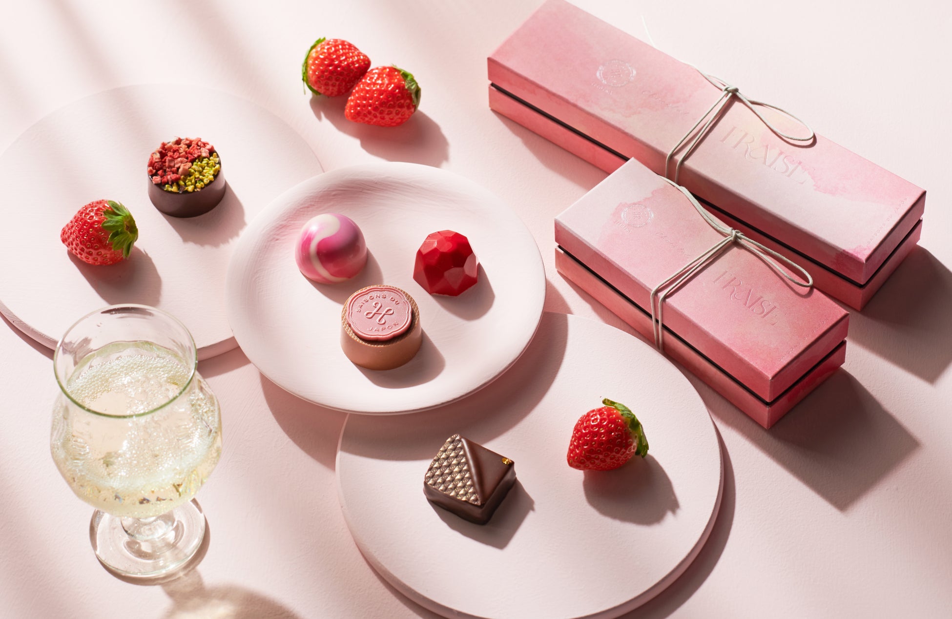 苺の魅力を堪能する華やかなショコラの詰め合わせ。苺の甘酸っぱい香りとフル ーティーな 果汁を、北海道産生クリームや芳醇な香りのシャンパンとあわせて多彩な味わいに仕上げました。苺の美味しさを詰め込んだ贅沢なひと箱です。