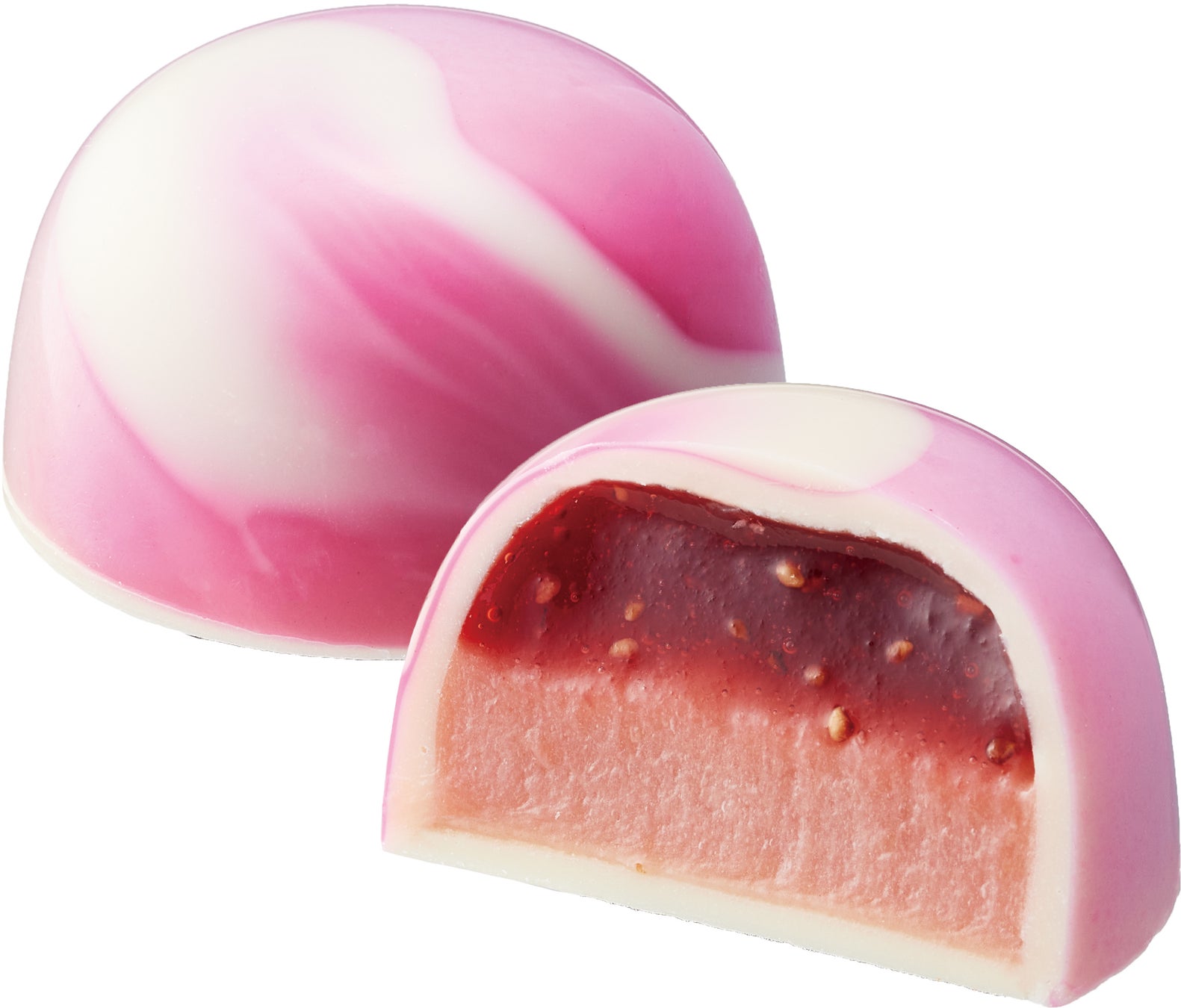 バニラが香るクリーミーなホワイトチョコレート“イボワール35%” に、あまおうのソースとガナッシュを合わせて。