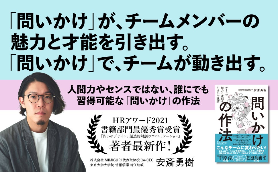 株式会社ディスカヴァー・トゥエンティワン(本社:東京都千代田区、取締役社長:谷口奈緒美)刊行の『問いかけの作法:チームの魅力と才能を引き出す技術』著者の安斎勇樹氏と、『心理的安全性のつくりかた』著者の石井遼介氏の対談イベントを、二子玉川 蔦屋家電主催で2022年4月18日にオンラインにて開催します。