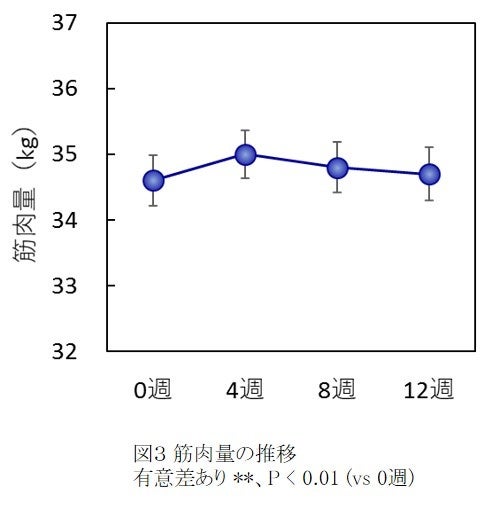 評価項目 :摂取0,4,8,12週後に体重、体組成、筋力(握力)、身体機能(歩行速度、歩幅)の測定、