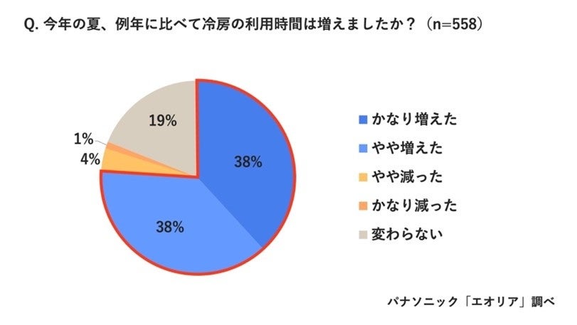「今夏、例年に比べて冷房の利用時間増えた」76%