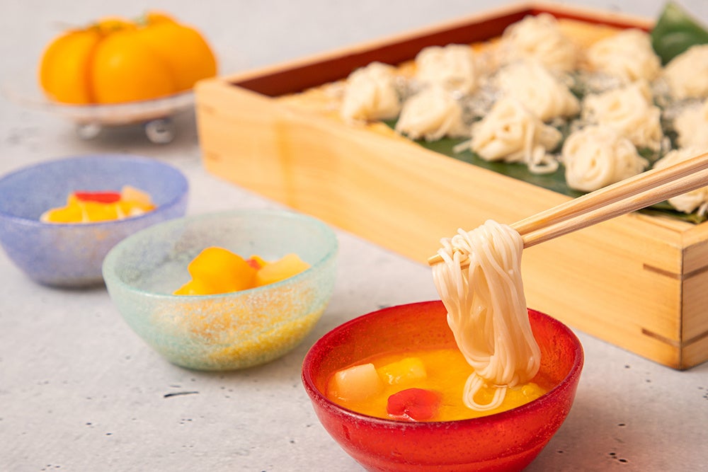 濃厚な桃ソースを冷やしソーメンと一緒にお召し上がりください。