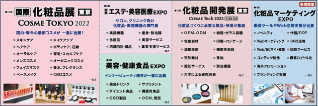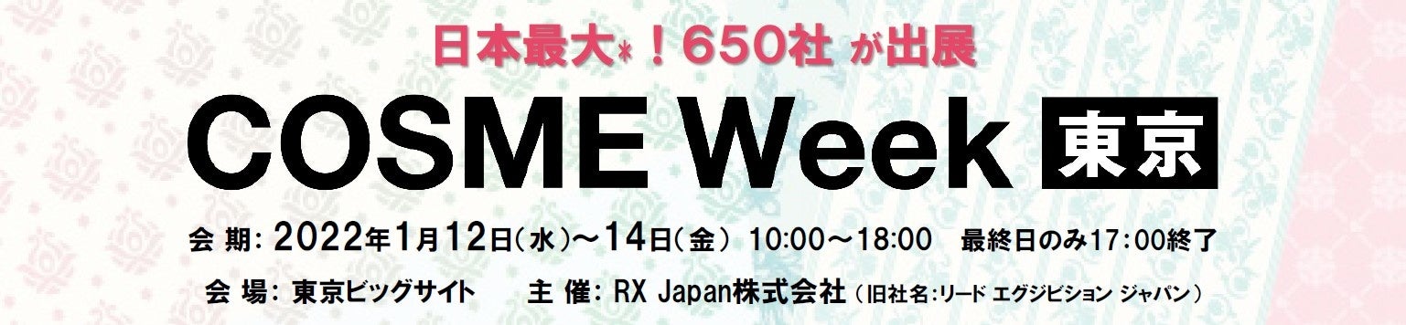 COSME Week 東京 2022 会期:1月12日[水]~1月14日[金] 10:00~18:00(最終日のみ17:00終了) 会場:東京ビッグサイト
