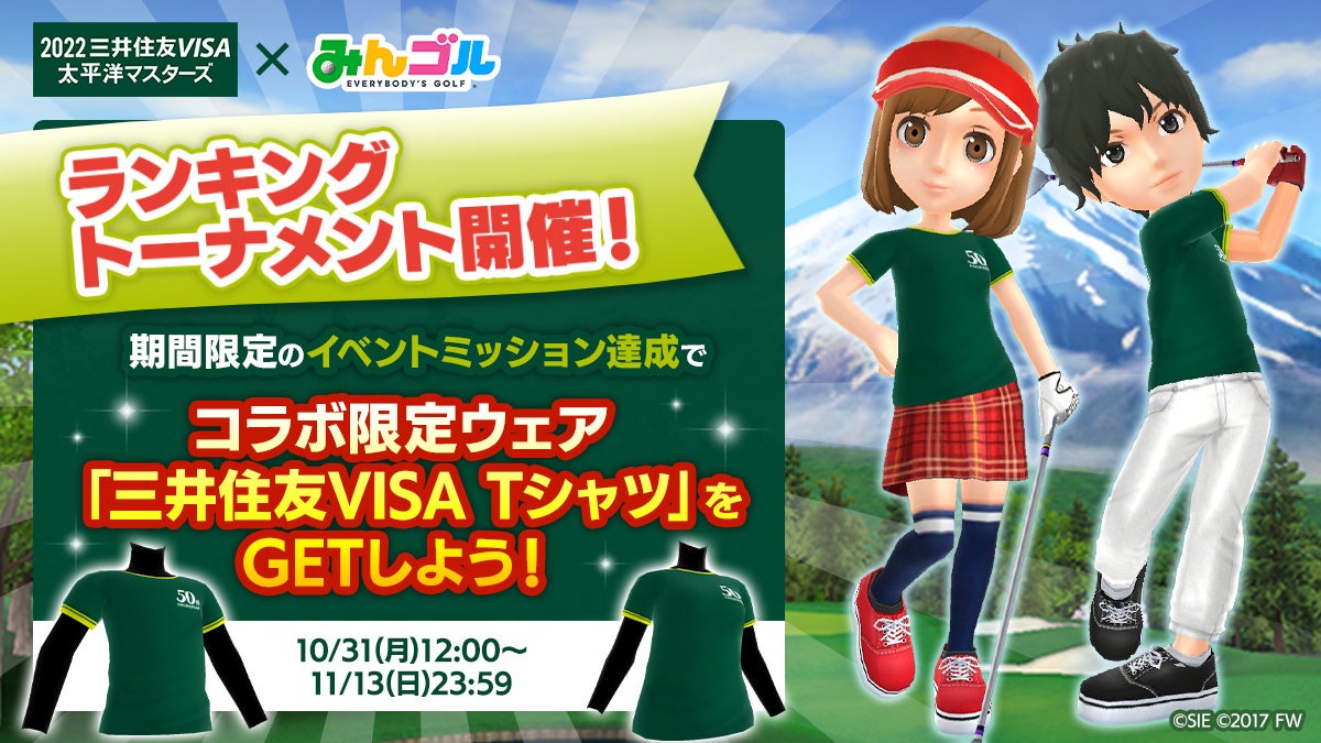 最大8人でのオンライン対戦ができるマルチプレイモード「みんなでゴルフ」において、ランキングトーナメント「三井住友VISA太平洋マスターズ Vポイント杯」を開催いたします。