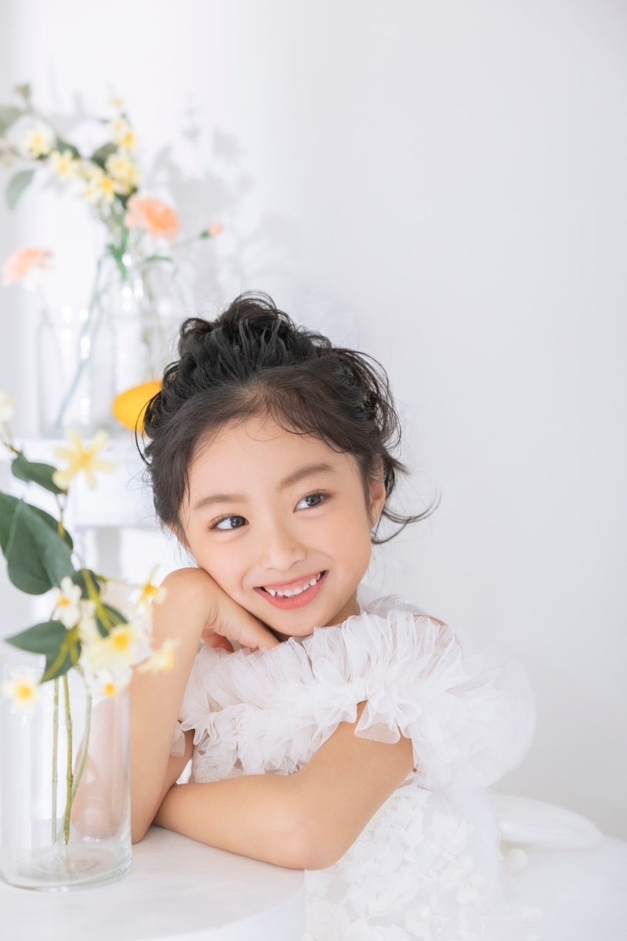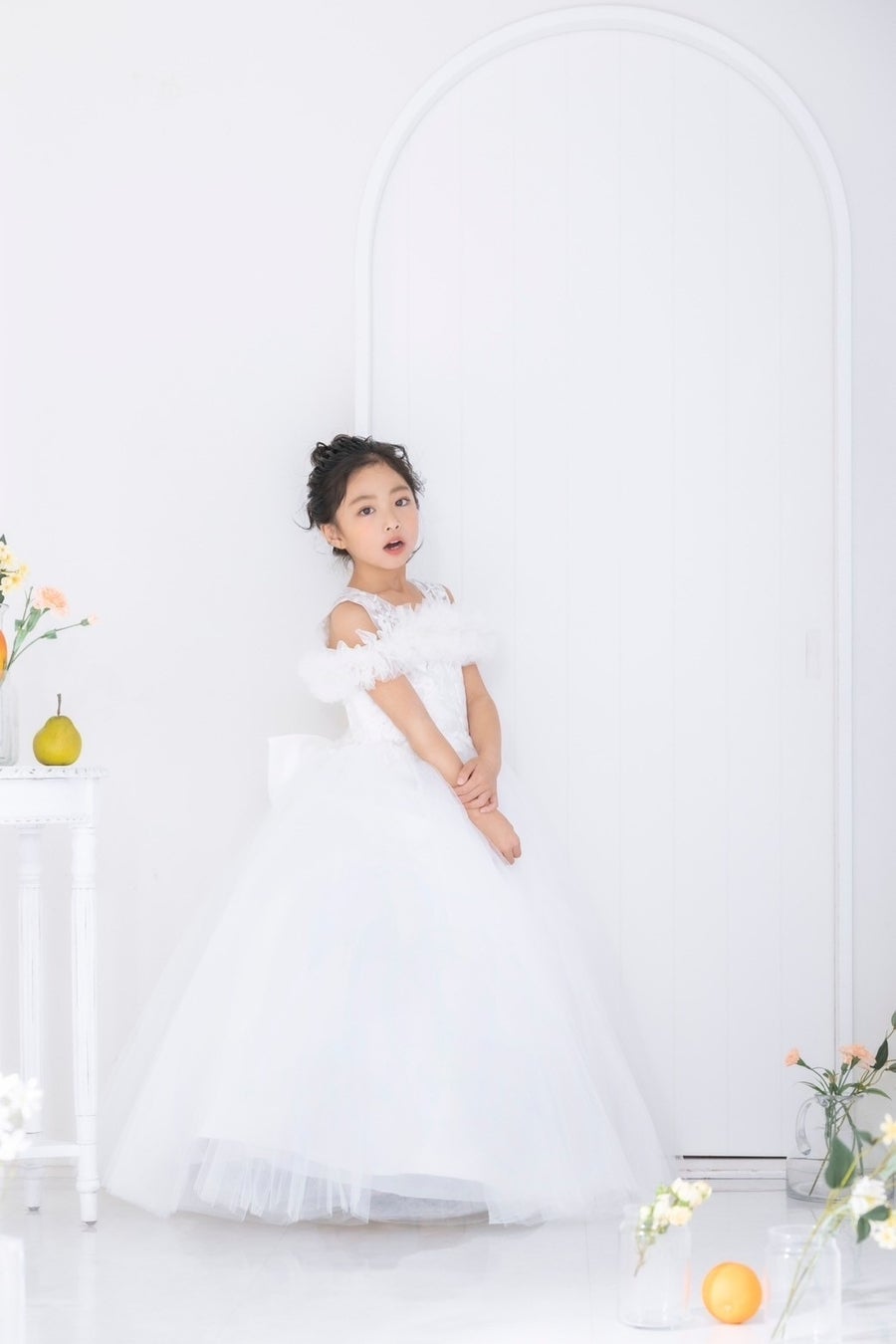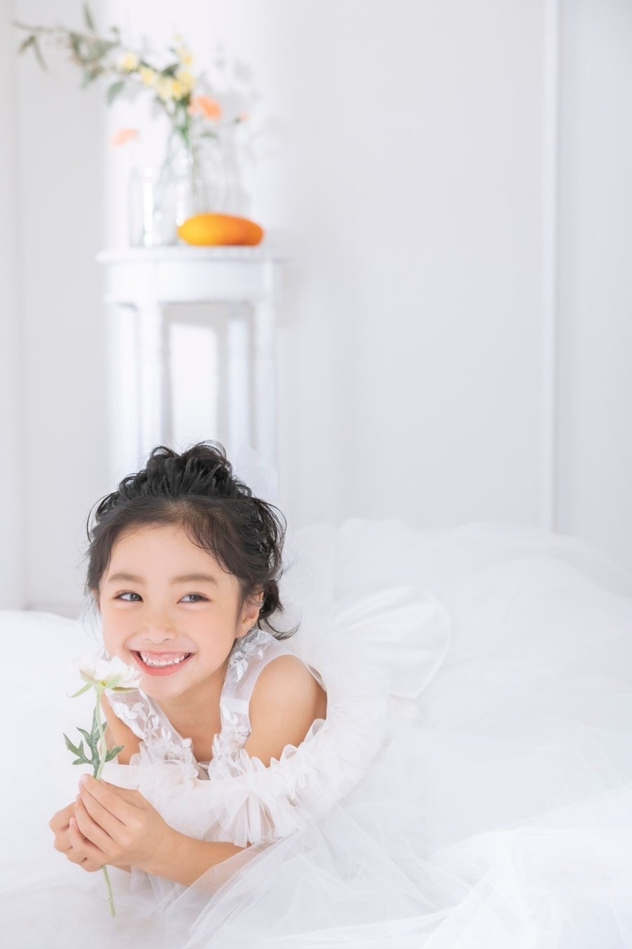 大人顔負けのホワイトドレスを使用したニュースタイル。