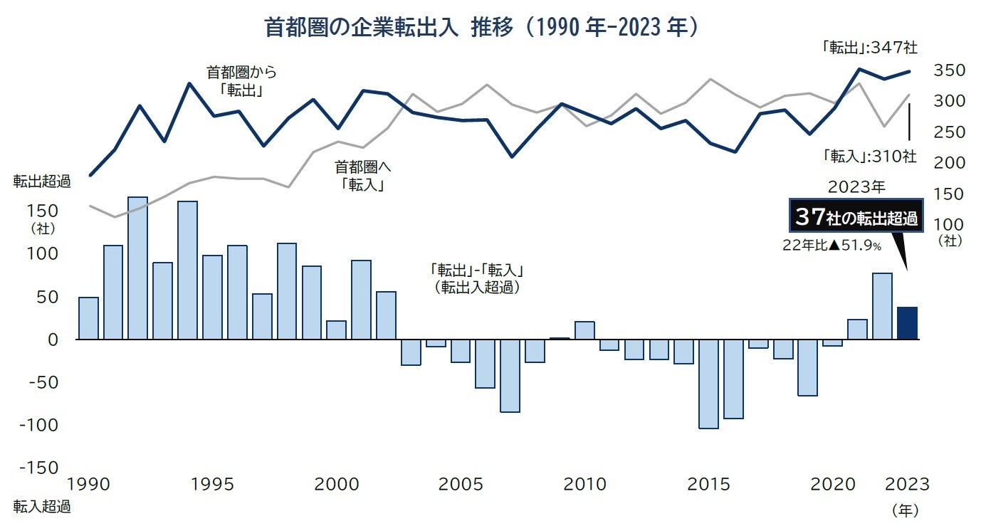 ※首都圏の企業転出・転入は、首都圏内外をまたぐ道府県との本社移転を指しており、首都圏内での県境をまたぐ本社移転は含まれない