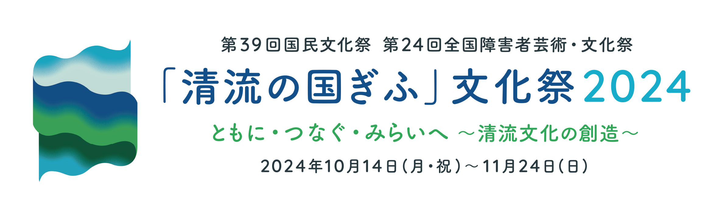 「清流の国ぎふ」文化祭2024は、第39回国民文化祭と第24回全国障害者芸術・文化祭の統一名称で、各種の文化活動を全国規模で発表・共演・交流する祭典です。岐阜県では、国民文化祭は1999年以来25年ぶり、全国障害者芸術・文化祭は2002年以来22年ぶりで、いずれも2回目の開催となります。