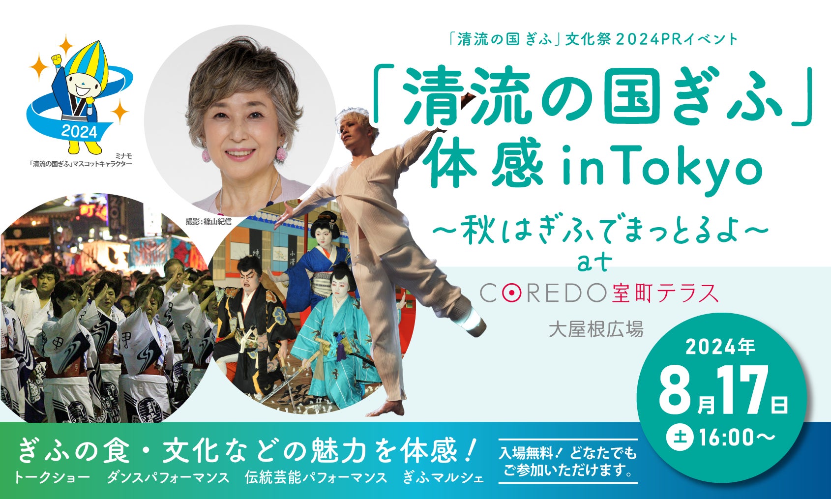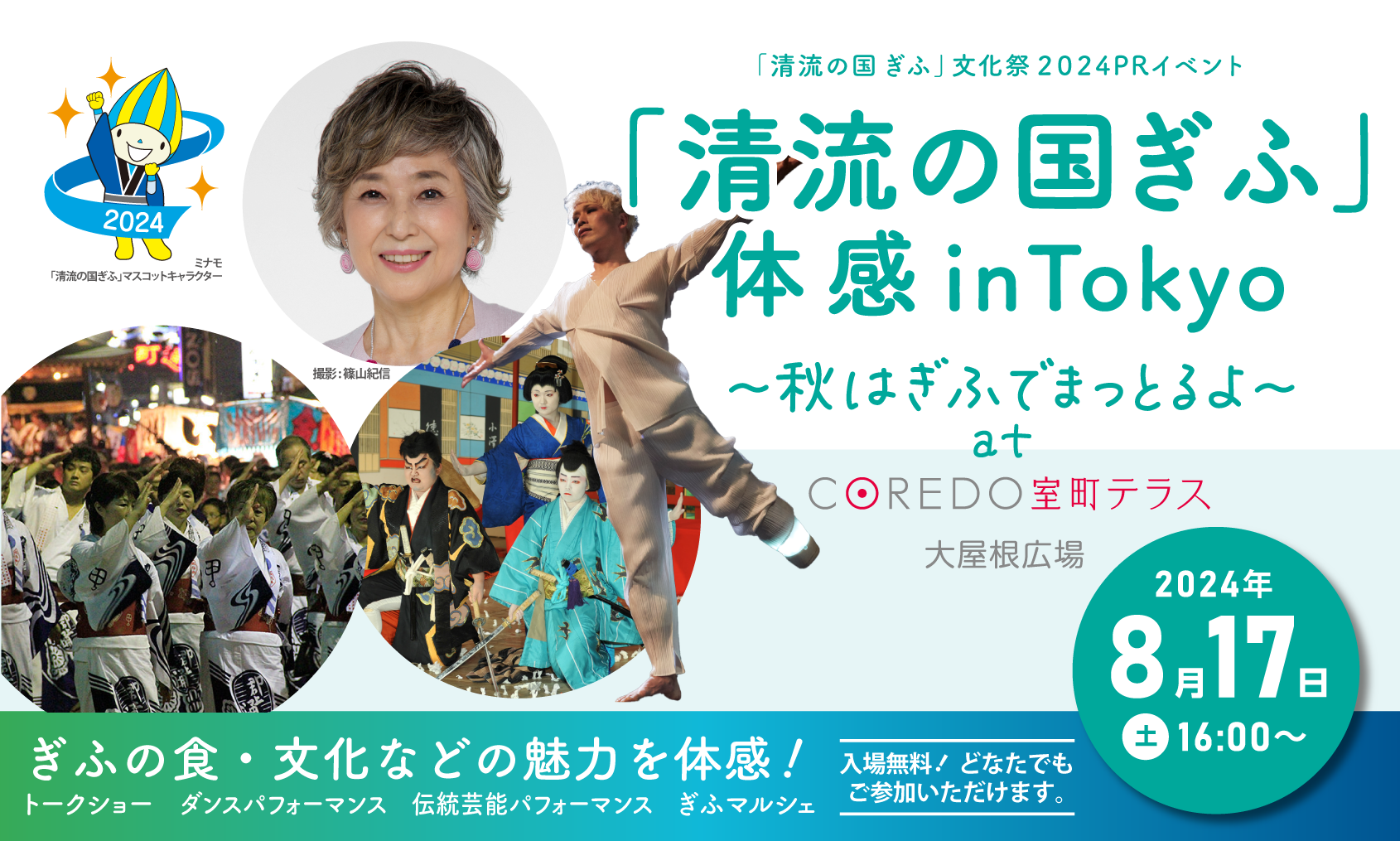 そのPRイベントとして、このたび8月17日(土)に東京都中央区日本橋の「コレド室町テラス」にて「清流の国ぎふ」体感 in Tokyo ~秋はぎふでまっとるよ~を開催し、文化の祭典への機運を盛り上げます。