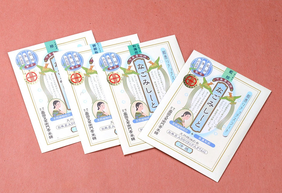 「下呂膏物語なごみしーと(冷感)」は、下呂膏の伝統的製法で、美濃和紙に飛騨産精油など天然和漢植物成分を塗り伸ばした、純和風アロマシートです。