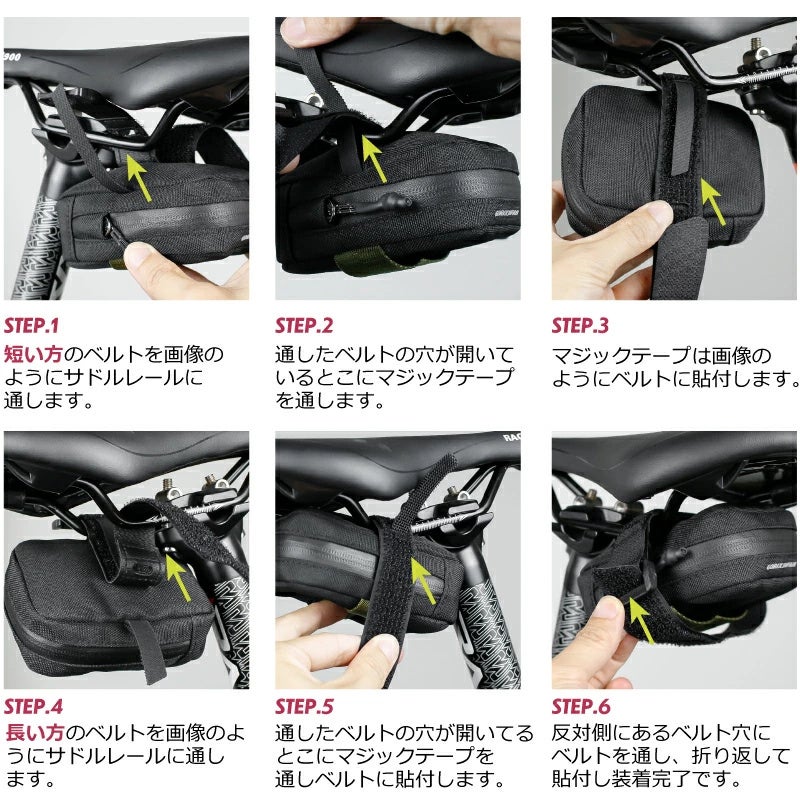 サドルレールに1本のベルクロで簡単固定でき、取り付け・取り外しも手間がかかりません。