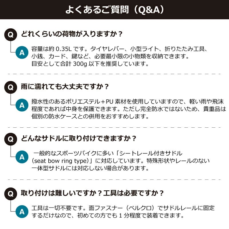 「“必要最小限:ミニマリスト派に最適な小型サドルバッグ”」