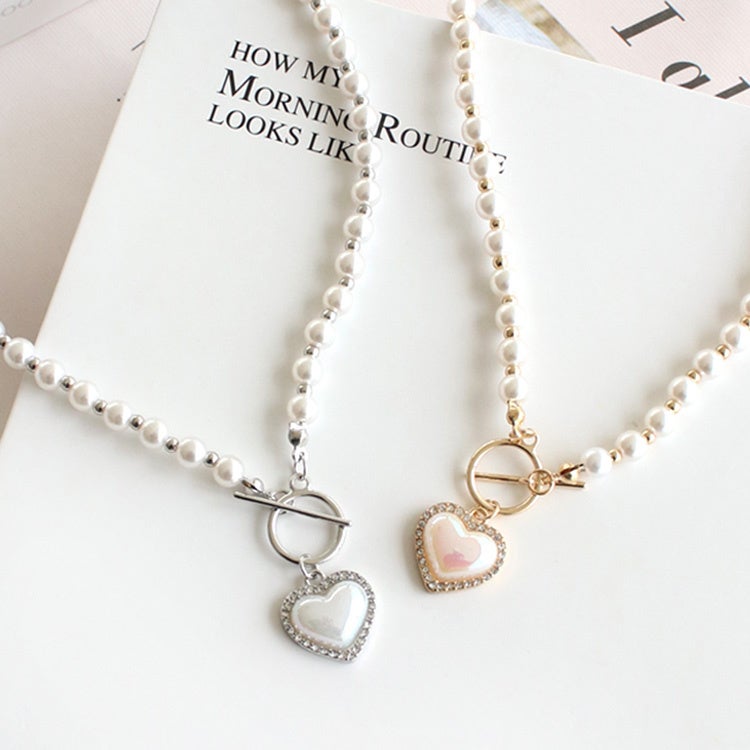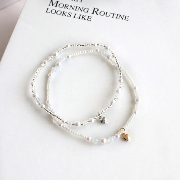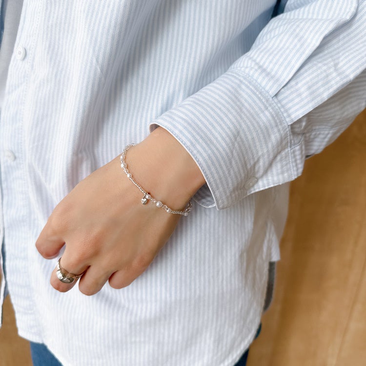 商品名:ハートチャーム付き パール×ビーズブレスレット