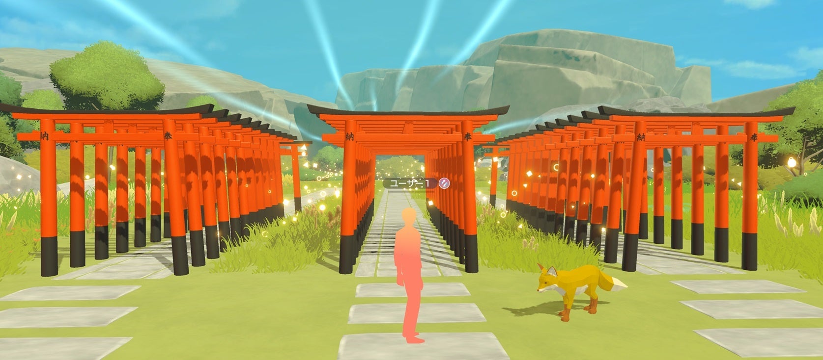 利用者はメタバース内で自分の願いや感謝を込めた「鳥居」を建立する体験ができます。